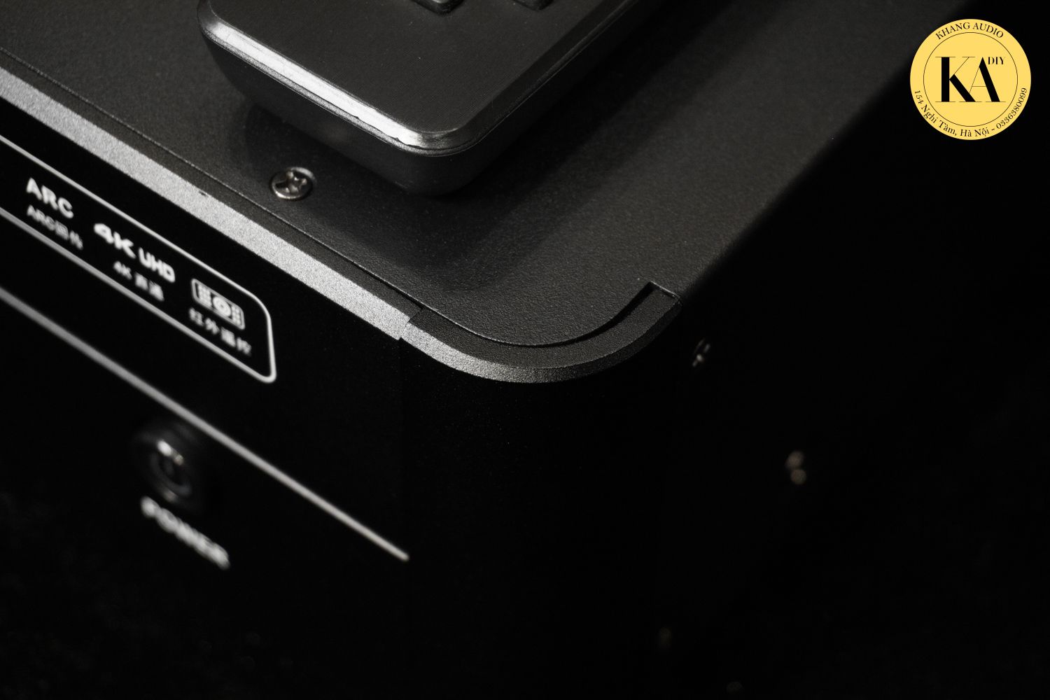 Màn hình cảm ứng LCD với các thông số điều khiển được đặt ở vị trí trung tâm của mặt trước amply. Mặt sau là hệ thống cổng kết nối (Optical, ARC, HDMI...) được sắp xếp và bố trí khoa học, giúp người dùng dễ dàng ghép nối amply với loa karaoke, tivi hoặc các thiết bị nghe nhìn khác.