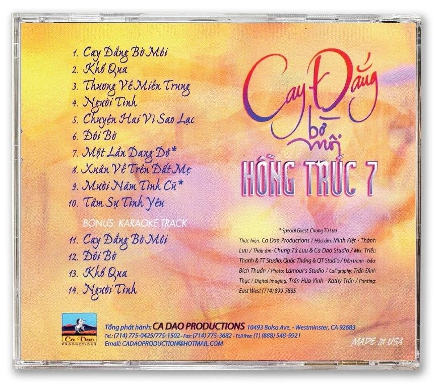 List bài hát: 1. Cay Đắng Bờ Môi 2. Khổ Qua 3. Thương Về Miền Trung 4. Người Tình 5. Chuyện Hai Vì Sao Lạc 6. Đôi Bờ 7. Một Lần Dang Dở 8. Xuân Về Trên Đất Mẹ 9. Mười Năm Tình Cũ 10. Tâm Sự Tình Yêu BONUS: KARAOKE TRACK 11. Cay Đắng Bờ Môi 12. Đôi Bờ 13. Khổ Qua 14. Người Tình