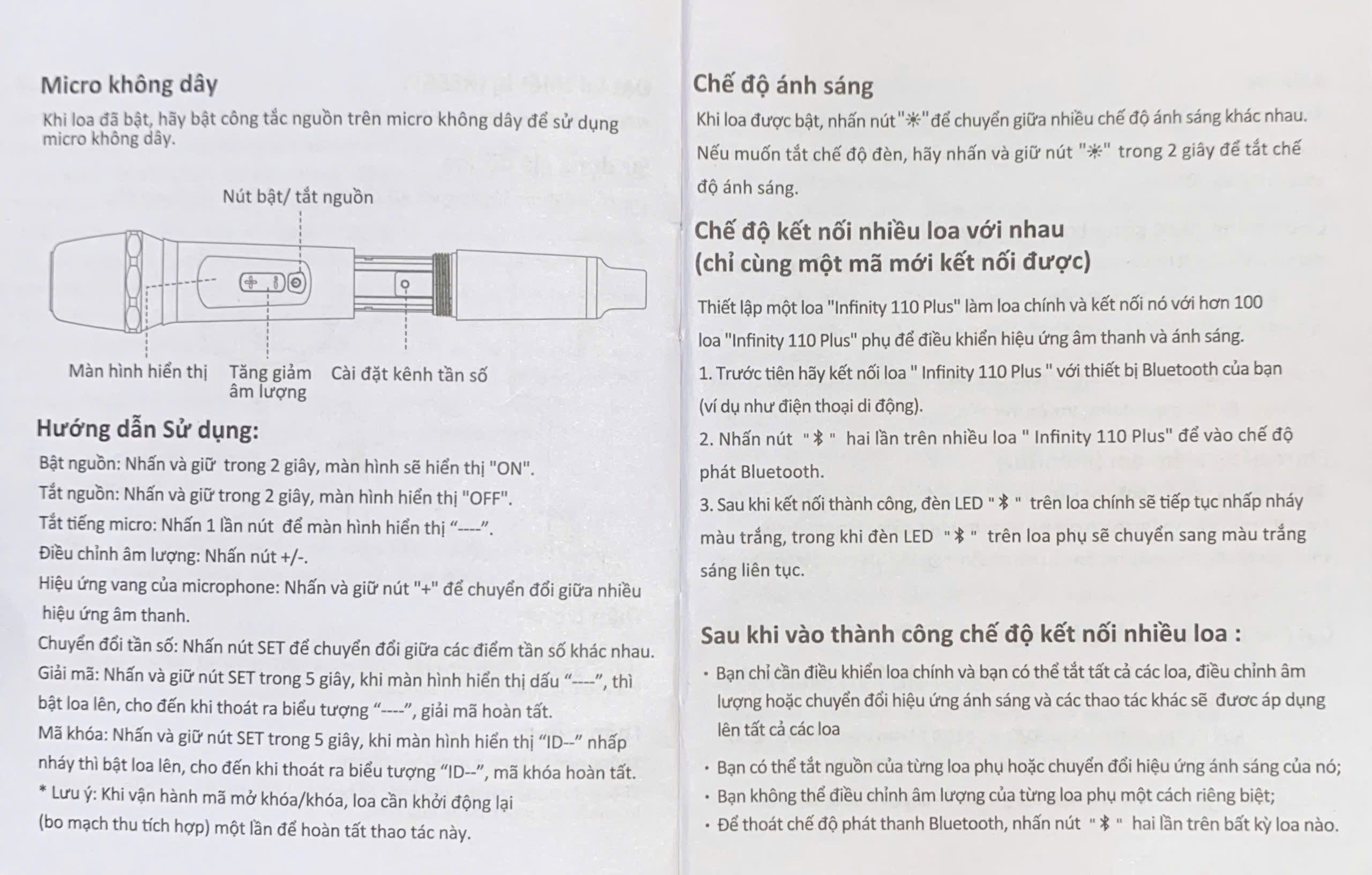| Micro không dây | 02 micro không dây đi kèm | |