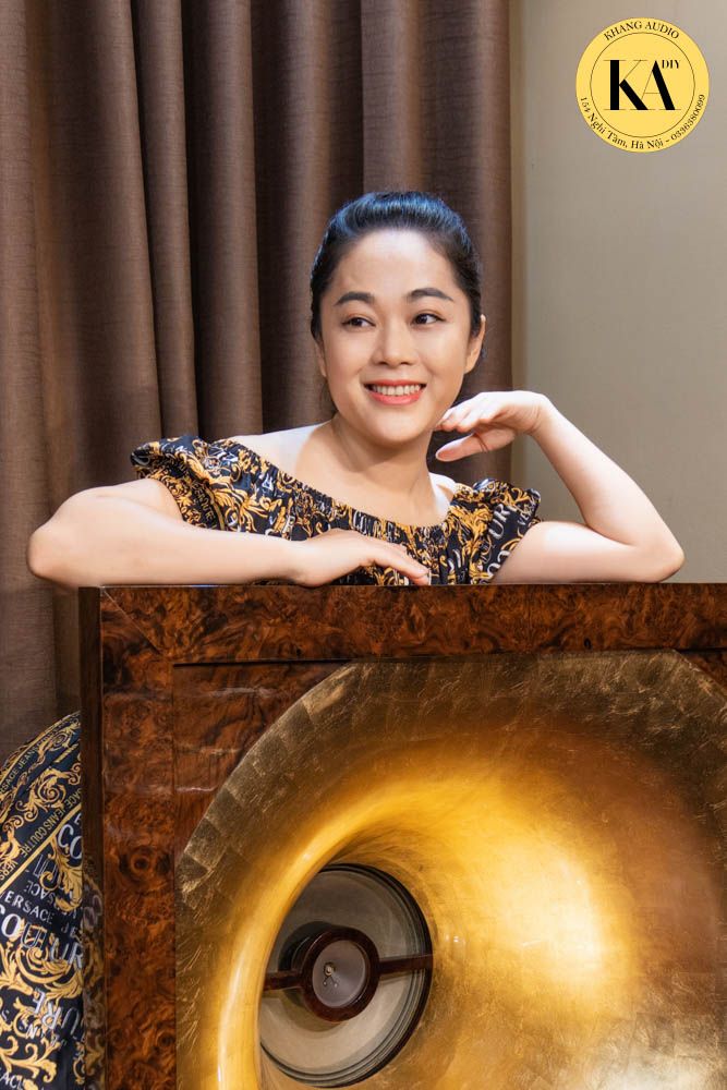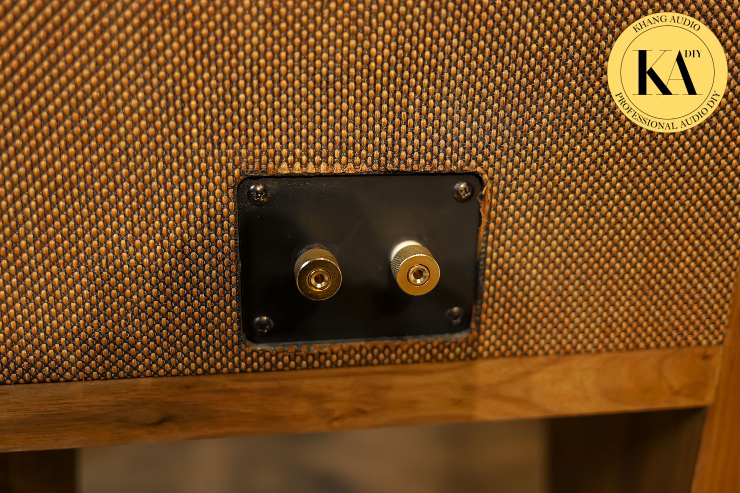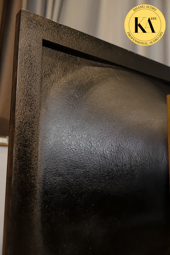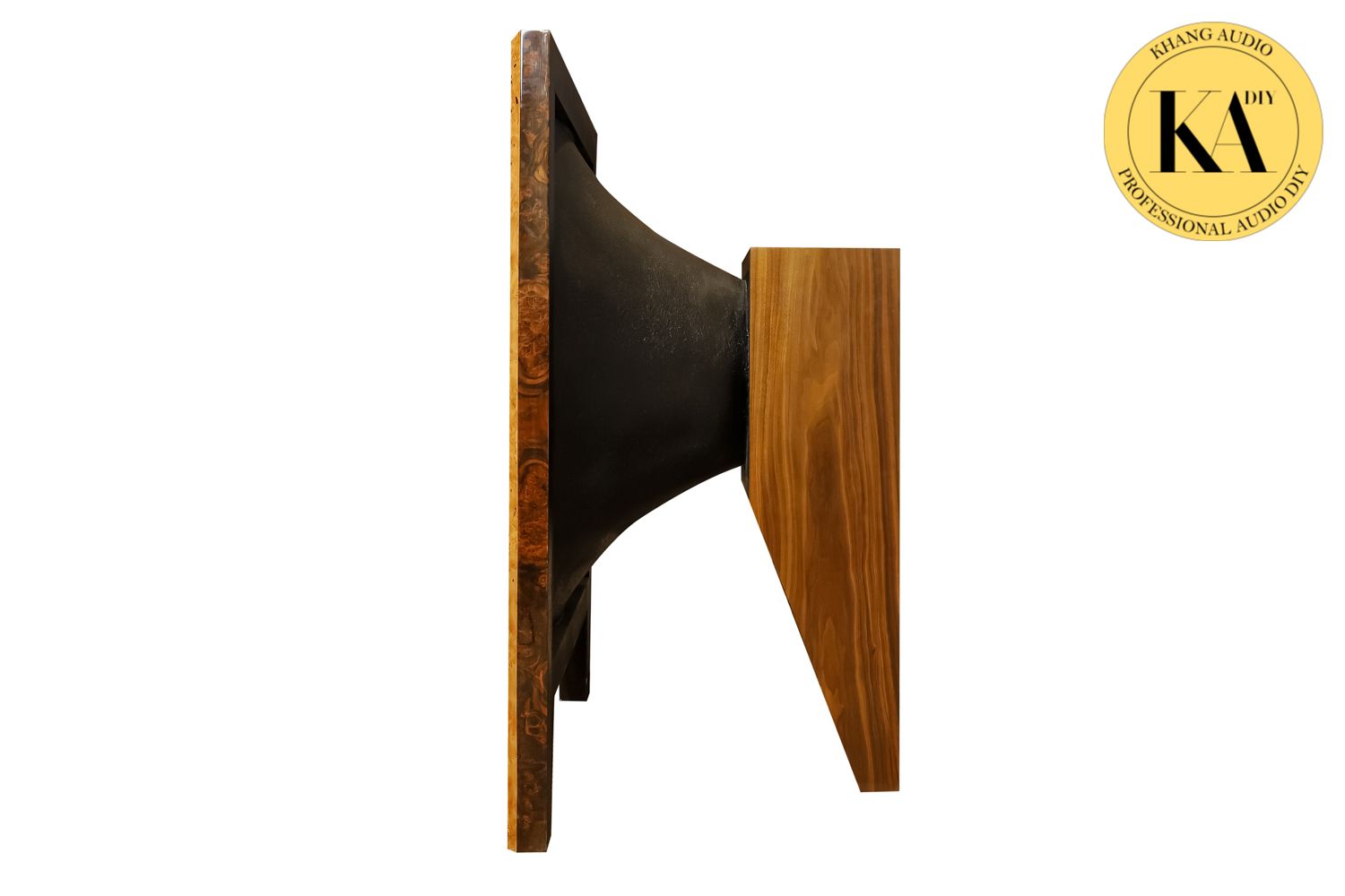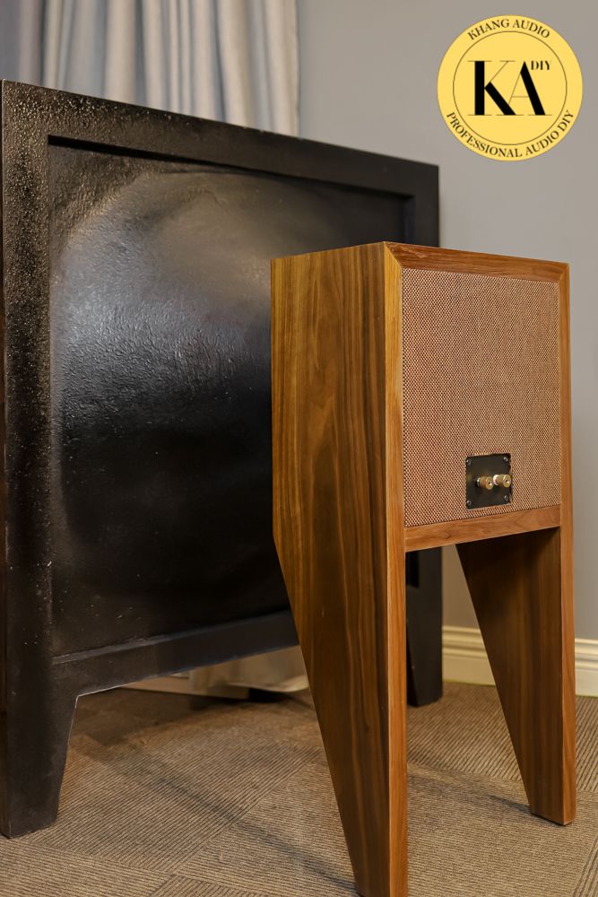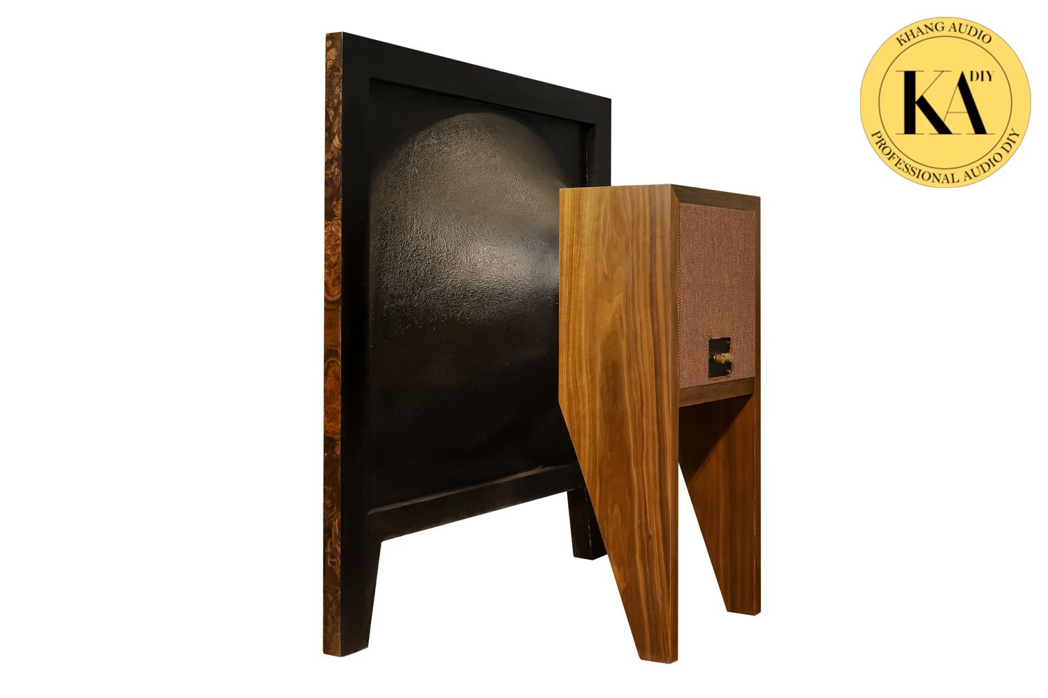 Vật liệu làm thùng loa: Gỗ dán cho audio và hoàn thiện gỗ óc chó, sơn bóng piano, kèn tre dát vàng