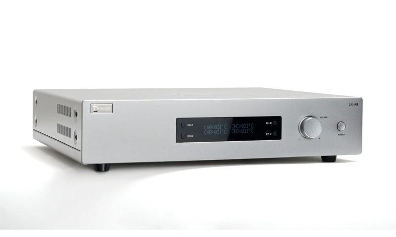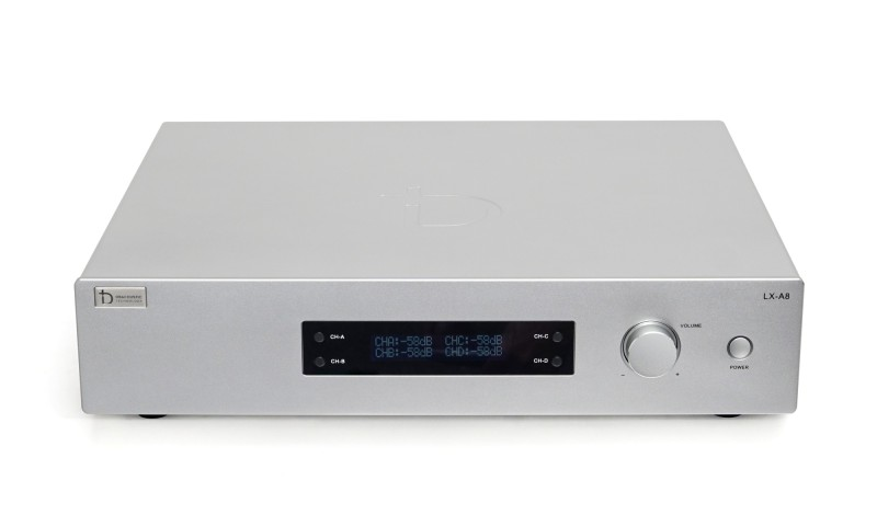 - Phía trước LX - A8 nổi bật là màn hình LCD hiển thị đầy đủ thông số hiệu chỉnh khi sử dụng. Thay vì các đèn led, hệ thống tản nhiệt và các nút vặn như truyền thống, LX A8 được thiết kế tối giản hơn với 4 nút bấm chuyển CH và 1 nút vặn hiệu chỉnh cỡ lớn và 1 nút nguồn. Tạo cảm giác vô cùng basic nhưng cũng k kém phần sang trọng, đẳng cấp.