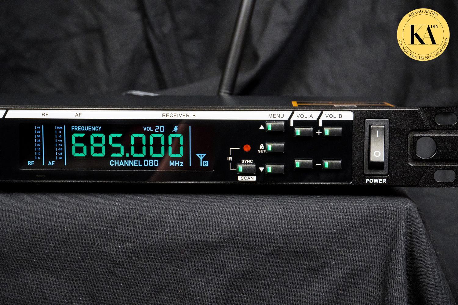 Lựa Chọn Công Suất Phát: Tay micro cho phép lựa chọn công suất phát sóng (10mW hoặc 5mW) để tối ưu hóa khoảng cách thu phát và thời lượng pin tùy theo môi trường sử dụng.